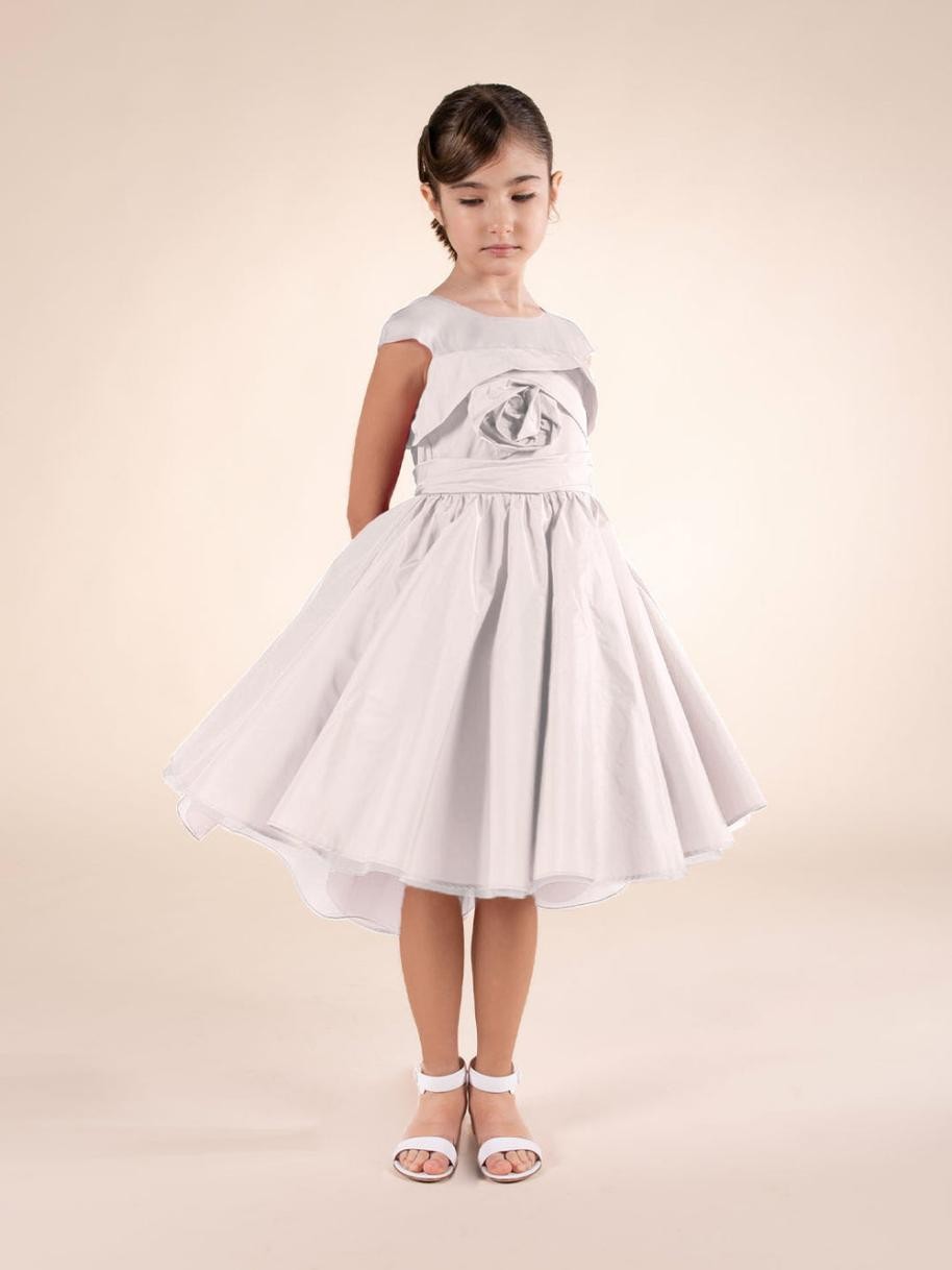 로즈 디테일태피터 가운은 캡 슬리브, 일루전 네크라인, 그리고 풍성한 스커트가 특징인 A라인 무릎 길이의 드레스입니다. 정교하게 제작된 태피터 로즈 패턴이 보디스에 장식되어 있습니다.