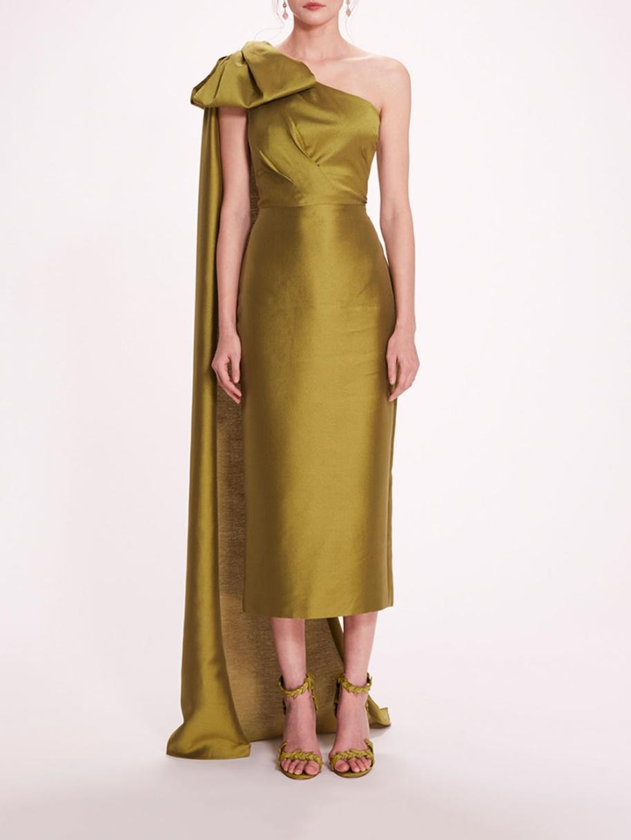 여성 마르케사 드레스 | 실크 미카도 미디 드레스 올리브
