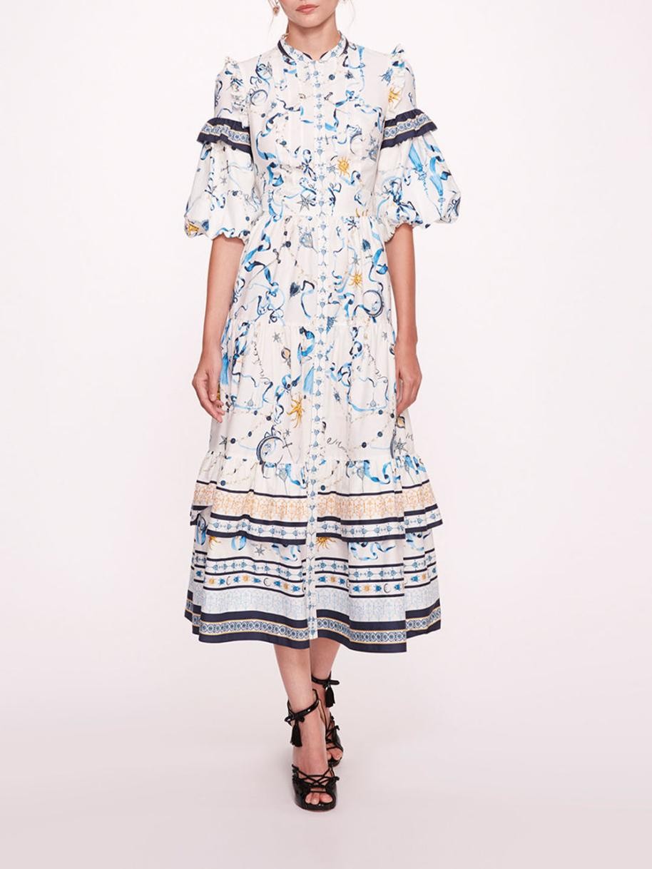 파커 드레스는스카프 프린트 코튼 팝린 미디 드레스로,