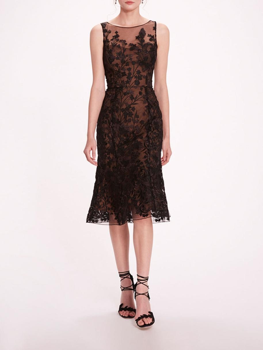 Dam Marchesa Klänningar | Broderad Tyll Midiklänning Svart