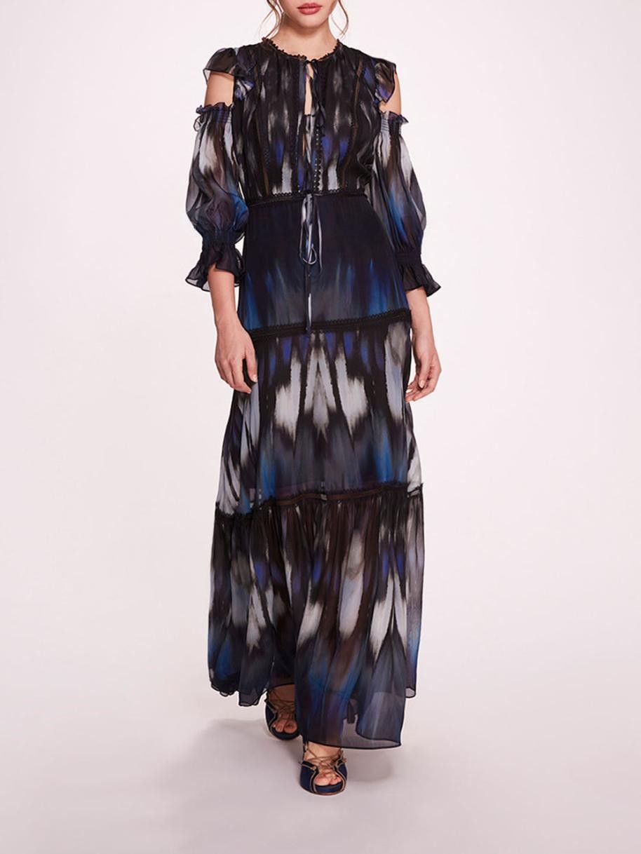 Marchesa Klänningar Dam | Abstrakt Viskos Maxiklänning Blå Multifärgad