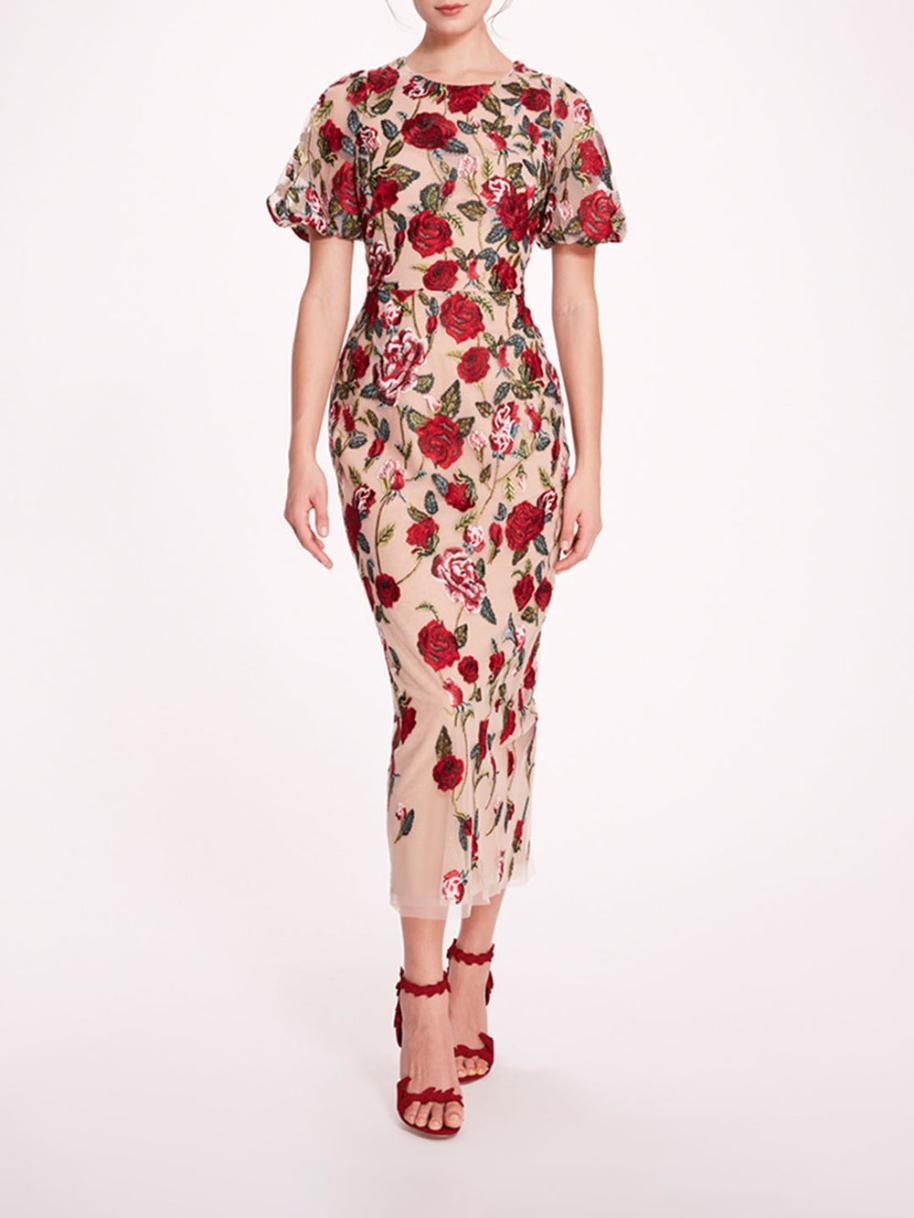 Marchesa Klänningar Dam | Roses Tyll Midiklänning Röd Nude