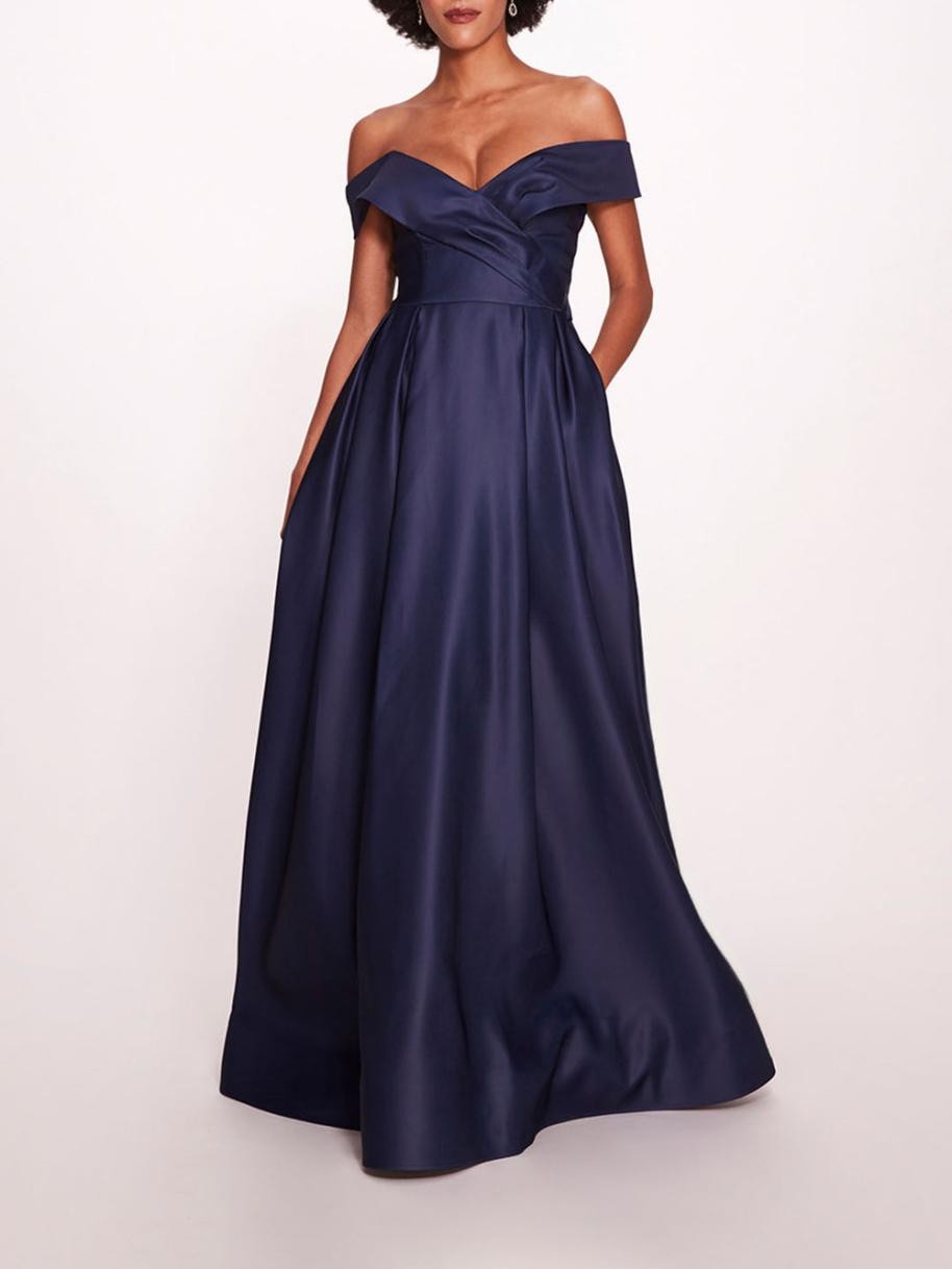 Marchesa-klänningar för kvinnor | Duchess-klänning i satin marinblå