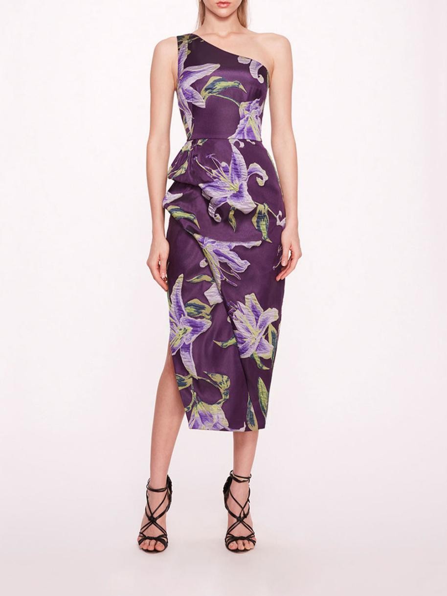 Marchesa-klänningar för kvinnor | Lila, draperad midiklänning med en axel
