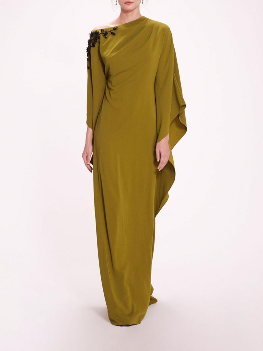 Women Marchesa Dresses | Embroidered Draped Kaftan Olive