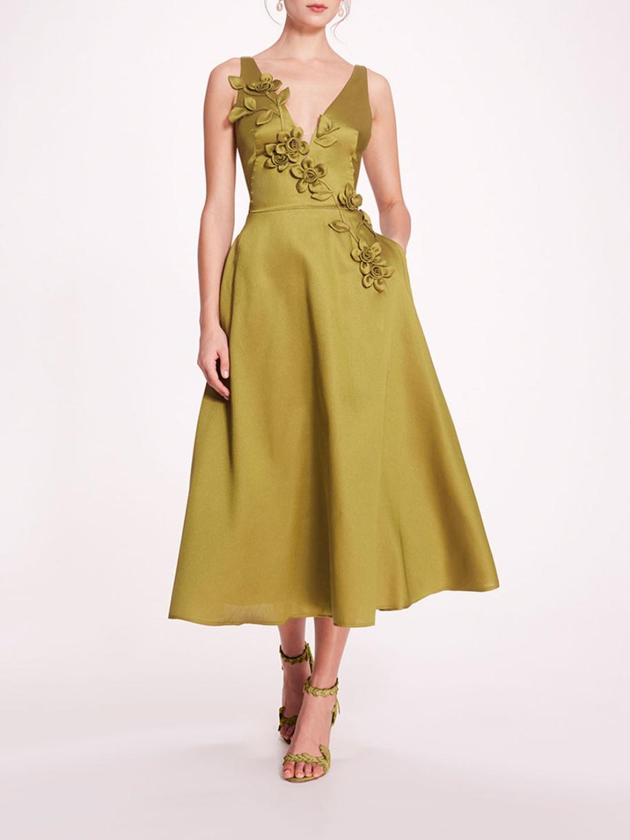Women Marchesa Dresses | Floral Mikado Midi Dress Olive