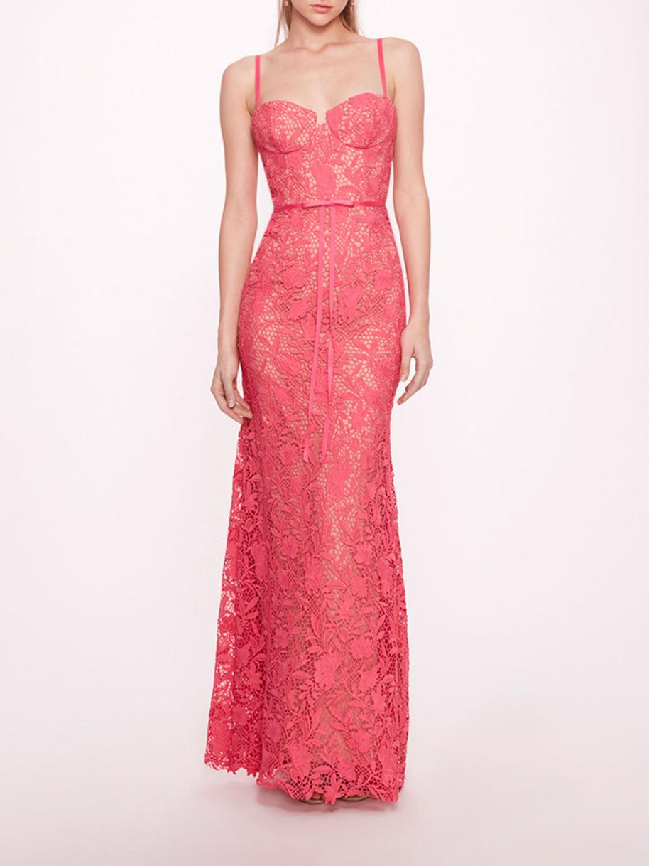Women Marchesa Dresses | Lace Mermaid Gown Bright Pink