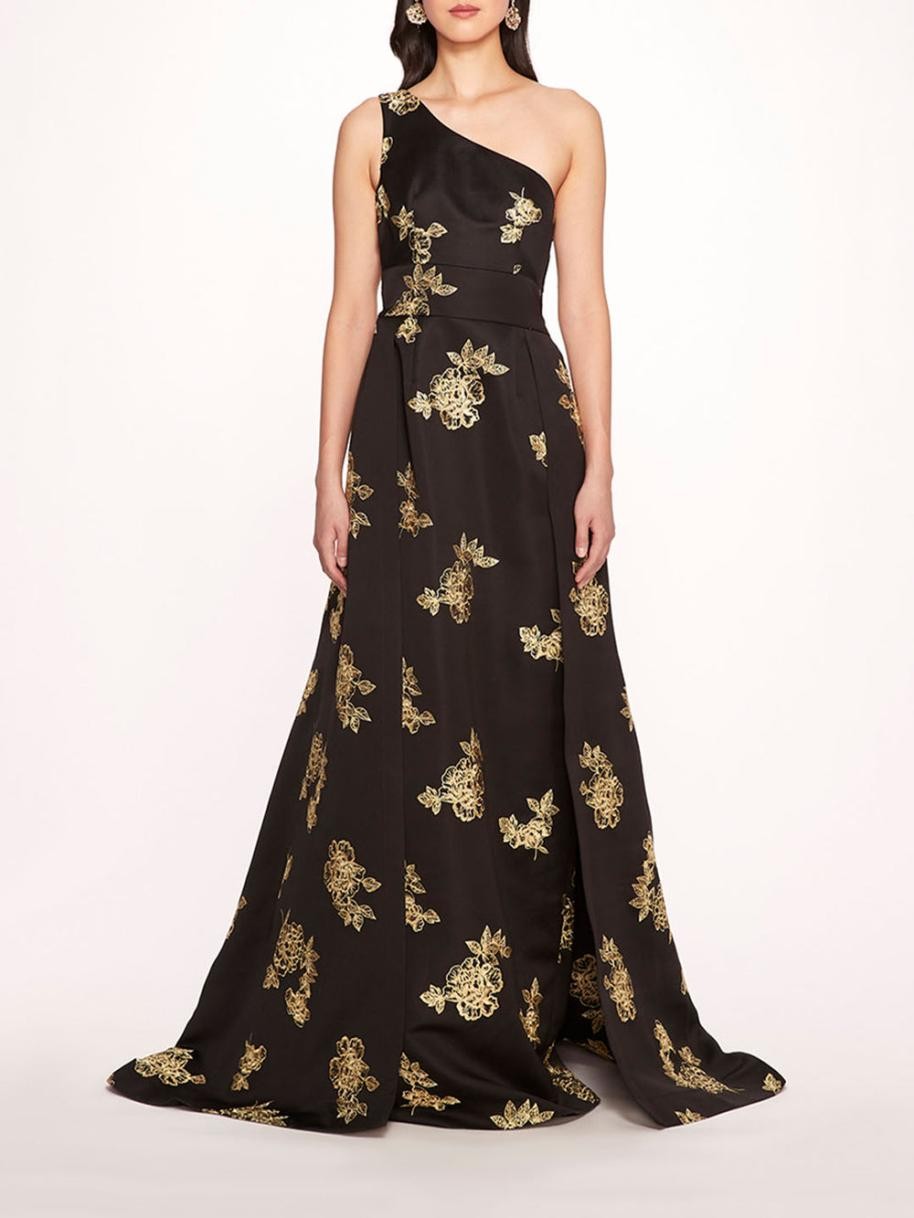 Women Marchesa Dresses | One Shoulder Marigold Ball Gown Black Gold