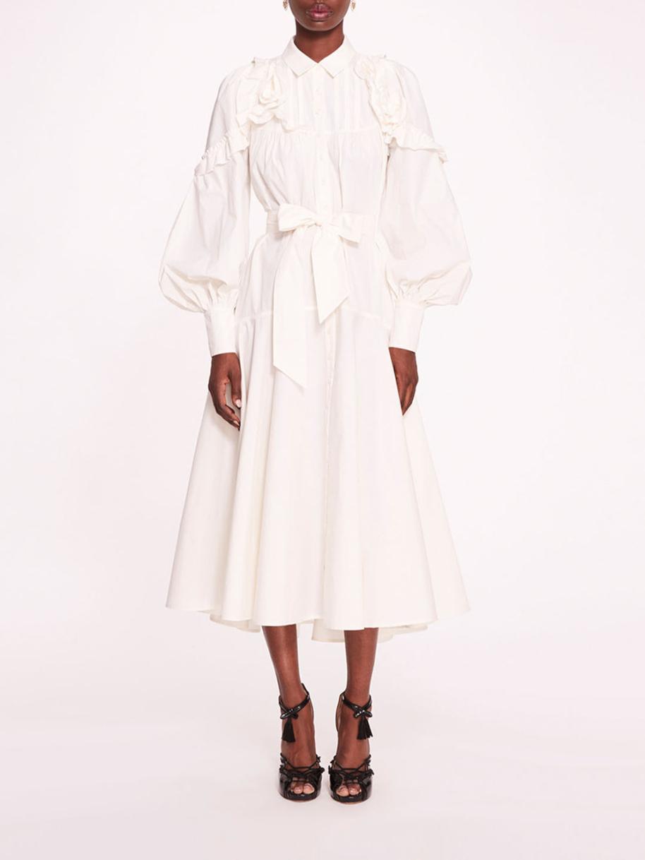 Women Marchesa Dresses | Rosette Ruffle Midi Dress Ivory