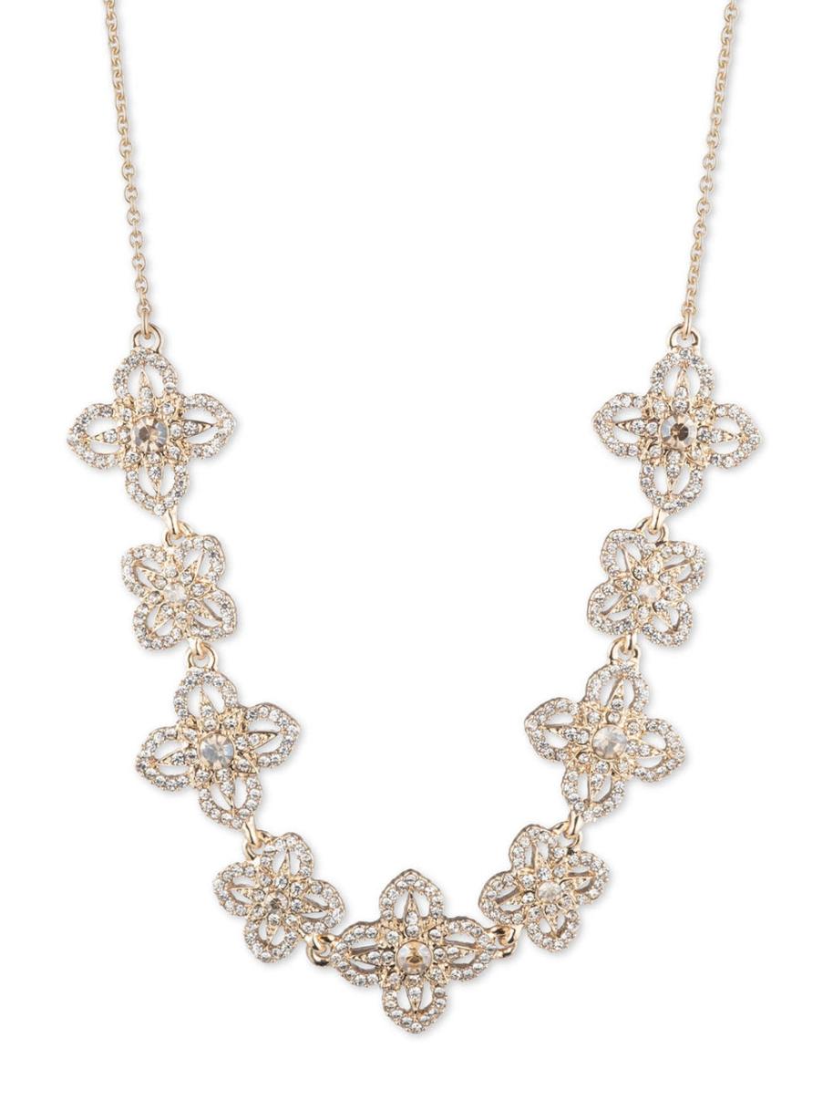 Women Marchesa Jewelry | Gold Lace Floral Necklace Gold