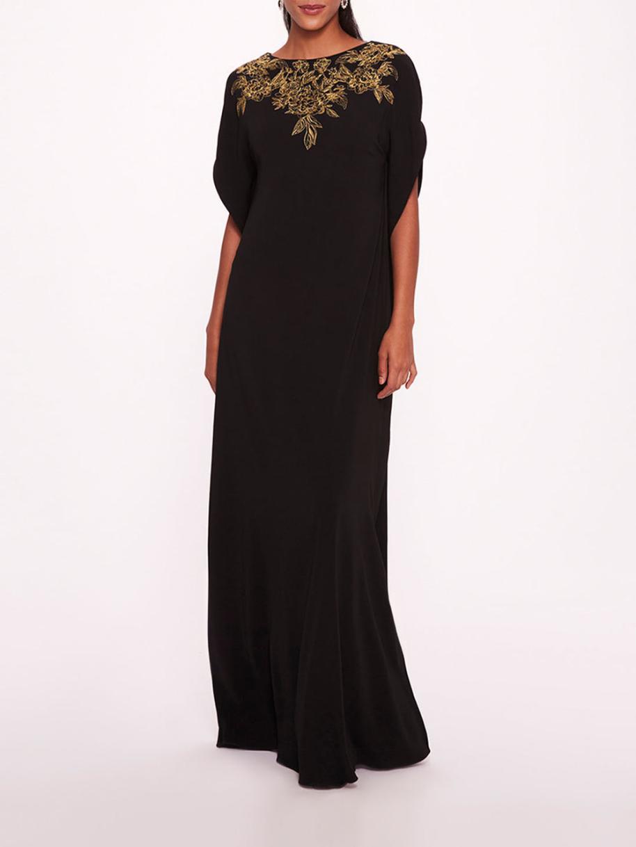 Women Marchesa Dresses | Embroidered Crepe Kaftan Black