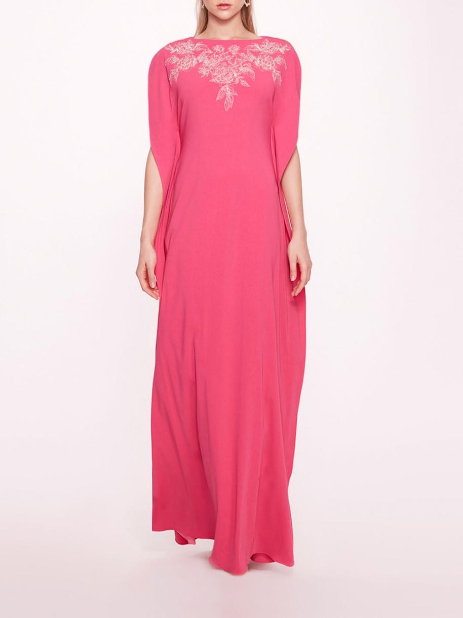 Women Marchesa Dresses | Embroidered Crepe Kaftan Pink