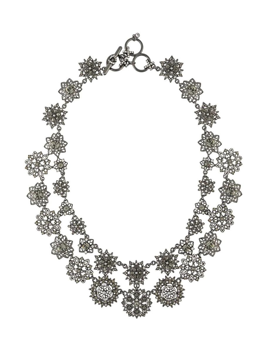 Women Marchesa Jewelry | Black Crystal Encrusted Double Strand Flower Necklace Black Diamond